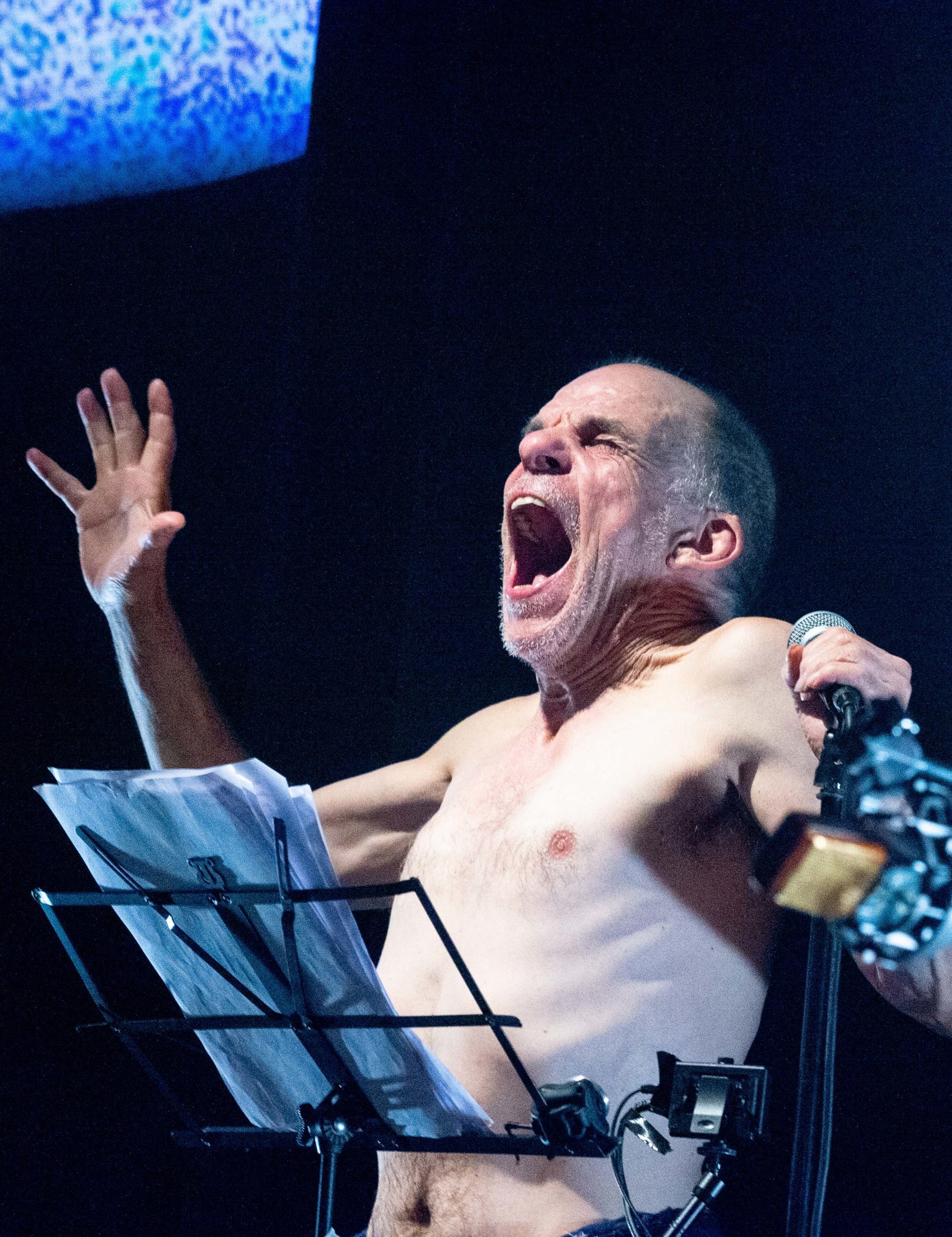 On a ensuite retravaillé cette version tous les trois, en fonction de ce qui allait le mieux résonner dans le texte avec Denis et puis en fonction de l’équilibre entre la musique et le texte. Au départ nous étions plutôt sur une base de lecture, pour ne pas rester complètement dans le champ du théâtre, mais finalement, ça s’y inscrit de plus en plus. Denis commence à jouer beaucoup de passages par cœur, quand il arrive sur le plateau, on sait tout de suite qu’il incarne Vaslav Nijinski. Il est devenu l’incarnation.