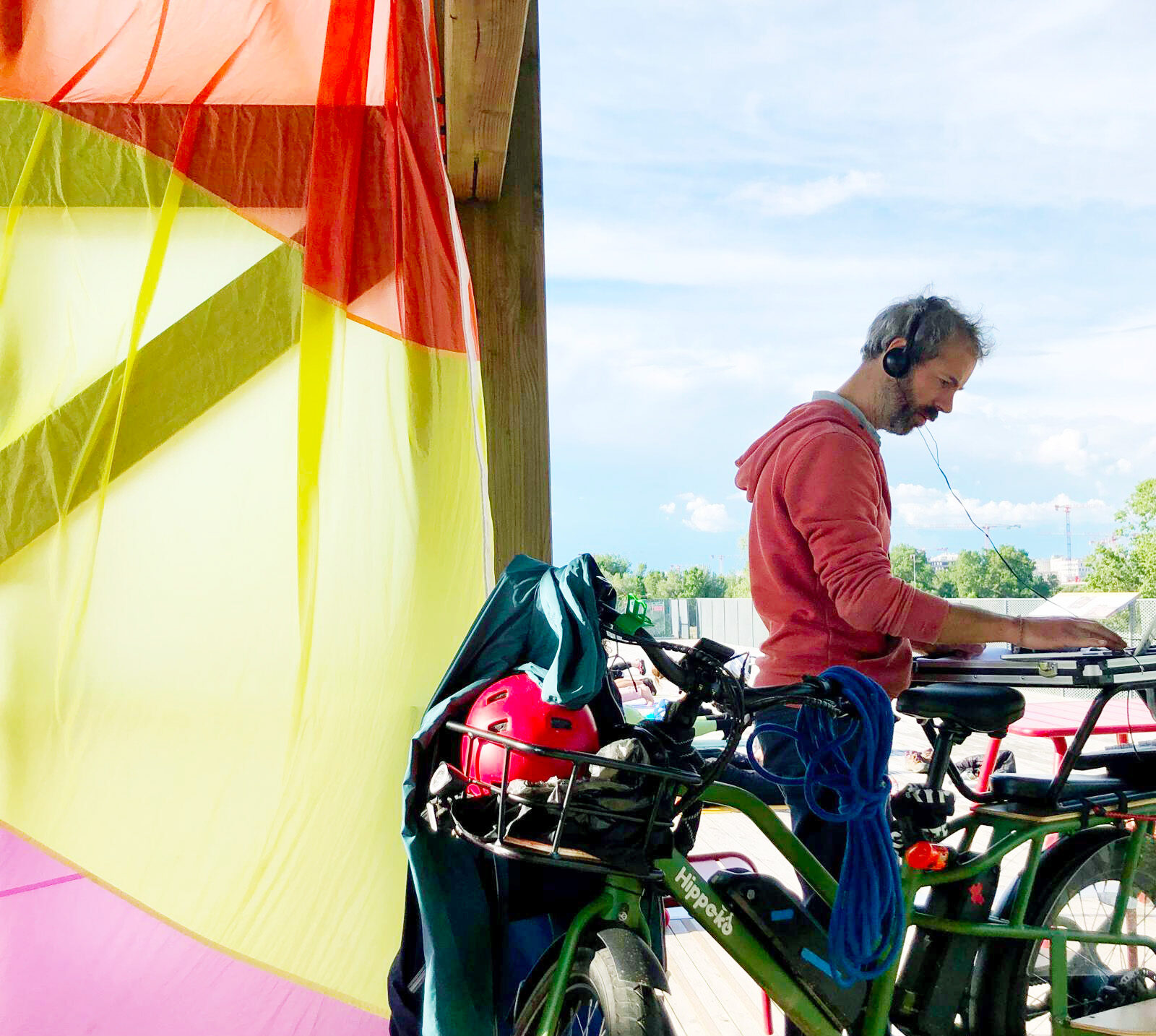 Anne Perny et Romain Meril sont deux créateur·rices sonores qui donnent voix aux expériences sensibles et individuelles. Pour fêter et raconter ces trois décennies passées, ils donnent rendez-vous aux différents publics et usager·ères du lieu afin de collecter souvenirs et impressions. À l’aide de leur vélo transformé en studio de radio, ils viennent donc vous poser quelques questions, vous écouter et vous enregistrer.
