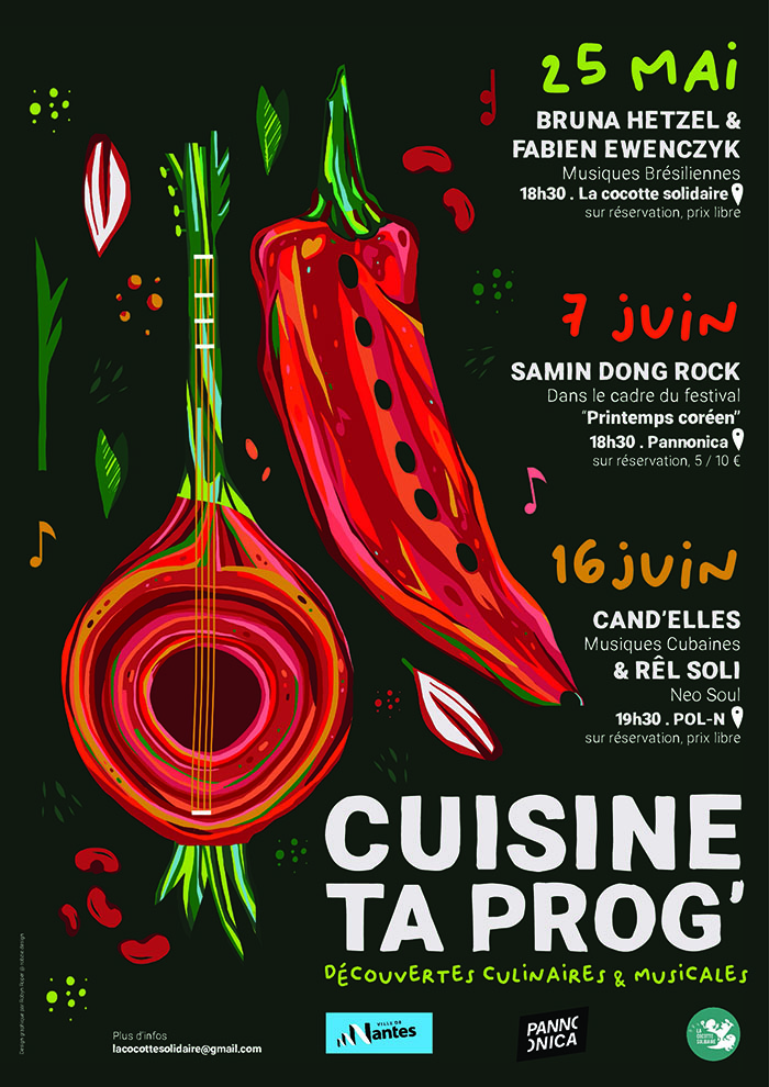 Au total le projet Cuisine Ta Prog’ aura reçu plus de deux cent spectateur·rices,  a provoqué le croisement des publics de la Cocotte Solidaire, du Pannonica mais aussi de Pol’n et du Printemps Coréen et permis ainsi de s’ouvrir à de nouveaux. Nous adressons donc tous nos remerciements à l’ensemble des équipes artistiques et à l’équipe organisatrice du Printemps Coréen, qui ont pris le temps de la rencontre et de l’échange en amont de chaque soirée, à la Ville de Nantes pour son soutien financier dans le cadre du dispositif des Budgets Participatifs,  à Pol’n pour la confiance et le bel accueil,  à Robzie pour son travail graphique et sa bienveillance, à Richard Guinouet pour sa grande adaptabilité, à Charlène de Fleurs Sauvages pour avoir embelli nos belles tablées, mais aussi merci aux curieux et curieuses venu·e·s découvrir ces soirées.